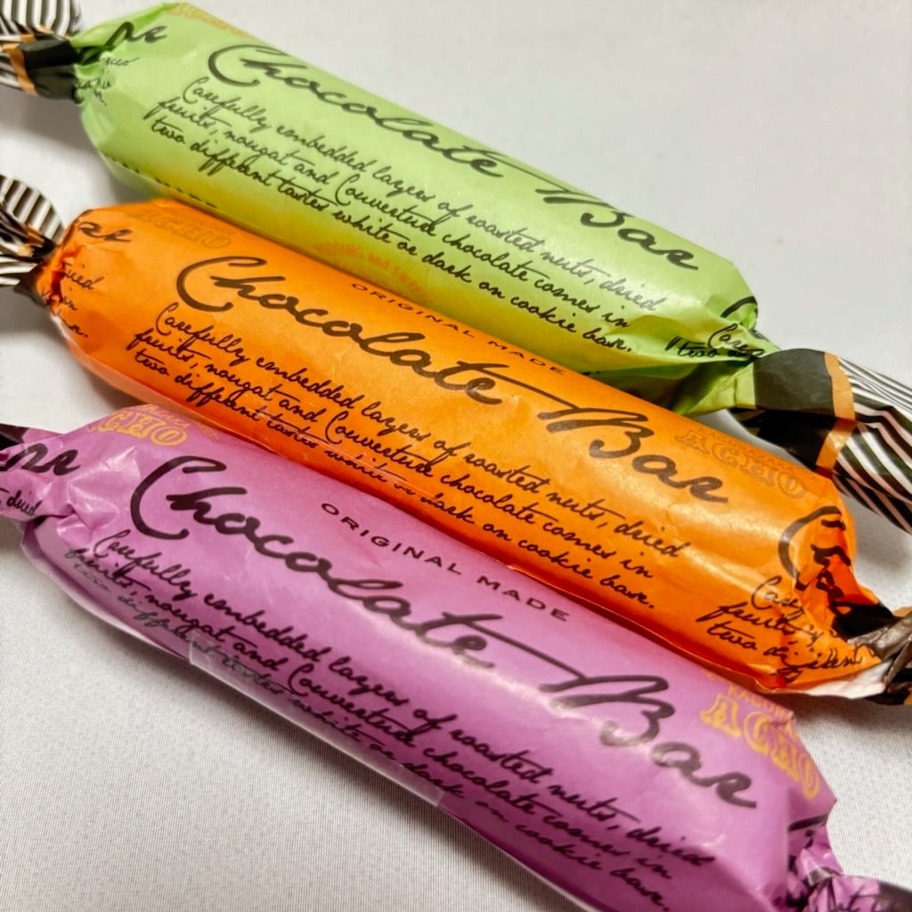 カラフルな見た目とフレーバーが楽しい、チョコレートバーです。